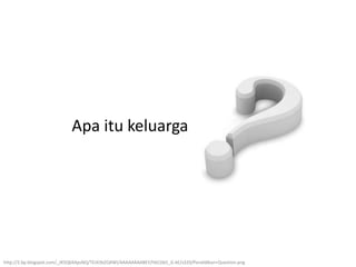 Dokumen tersebut membahas tentang konsep keluarga, tipe-tipe keluarga tradisional dan non tradisional, fungsi-fungsi keluarga, serta tahapan perkembangan keluarga.