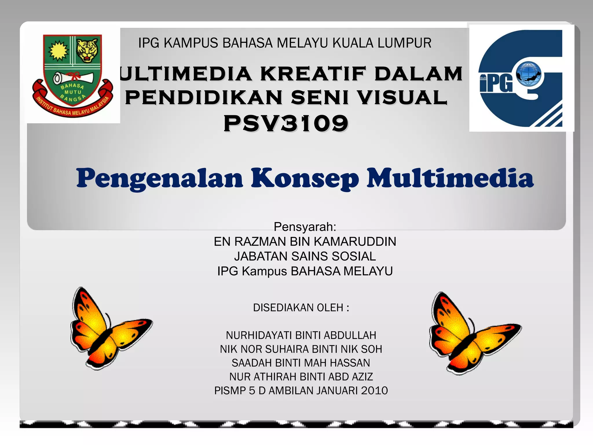 Dokumen ini membahas tentang multimedia sebagai teknologi yang menggabungkan elemen teks, grafik, audio, video, dan animasi untuk meningkatkan komunikasi dan proses pembelajaran. Multimedia telah berevolusi sejak tahun 1970-an dan kini dianggap penting dalam pendidikan kerana dapat meningkatkan motivasi dan pemahaman pelajar. Selain itu, penggunaan multimedia dalam pembelajaran telah terbukti dapat menurunkan masa belajar dan meningkatkan pencapaian pelajar.