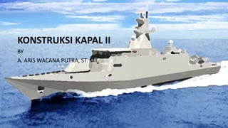Dokumen tersebut membahas tentang konstruksi bangunan atas kapal, termasuk definisi bangunan atas efektif dan tidak efektif, rumah geladak, persentase penambahan penguat, dan cara menghitung tebal pelat dan ukuran penegar.