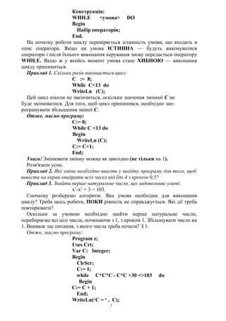 Мета: визначити поняття циклу; різні види циклів у Pascal; цикл з умовою;