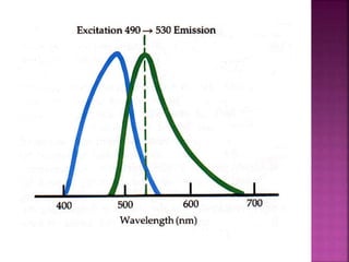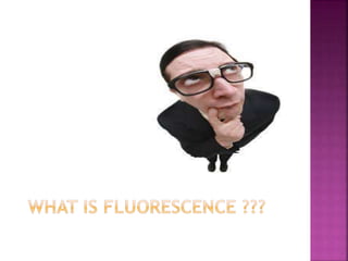 1. How fluorescent dyes like sodium fluorescein work by absorbing radiant energy and emitting light energy during fluorescence.