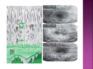 2. The uses and indications of FFA in evaluating retinal and choroidal diseases. It is used to assess vascular integrity and the blood-ocular barriers.