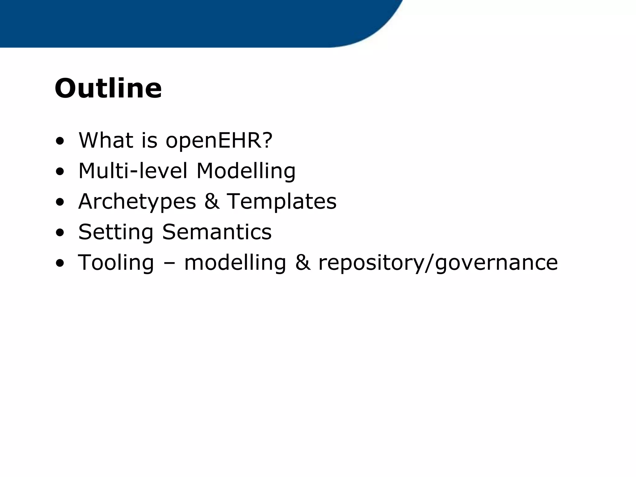 The document provides an overview of the OpenEHR framework, which is designed for representing health information through a multi-level modeling approach and archetypes. OpenEHR, established in 2001, emphasizes the separation of clinical and technical domains and offers tools for modeling, governance, and repository management. The framework is supported by an international community and is extensively used in research to create person-centered and computable health records.