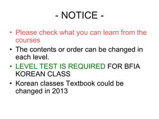 • Korean classes Textbook could be