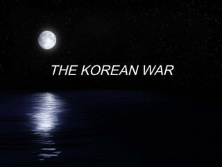 The Korean War began in 1950 when North Korean troops invaded South Korea, crossing the 38th parallel dividing line. The United Nations backed the US-led defense of South Korea in an effort to contain communism. Fighting escalated as Chinese troops joined the North Koreans, pushing UN forces back below the 38th parallel. The war settled into a stalemate along the border until an armistice was signed in 1953, leaving Korea still divided at the 38th parallel. The war had significant effects including the rise of the US military-industrial complex and the desegregation of American military units.