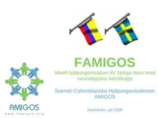 FAMIGOS erbjuder neurologiskt handikappade barn en integrerad behandling med rehabilitering, prenatal terapi och social integrering av barn med motoriska, sensoriska och eller kognitiva handikapp, i avsikt att höja dessas livskvalitet, genom att öka deras funktionsförmåga och nå så hög funktionell självständighet och social integration som möjligt.