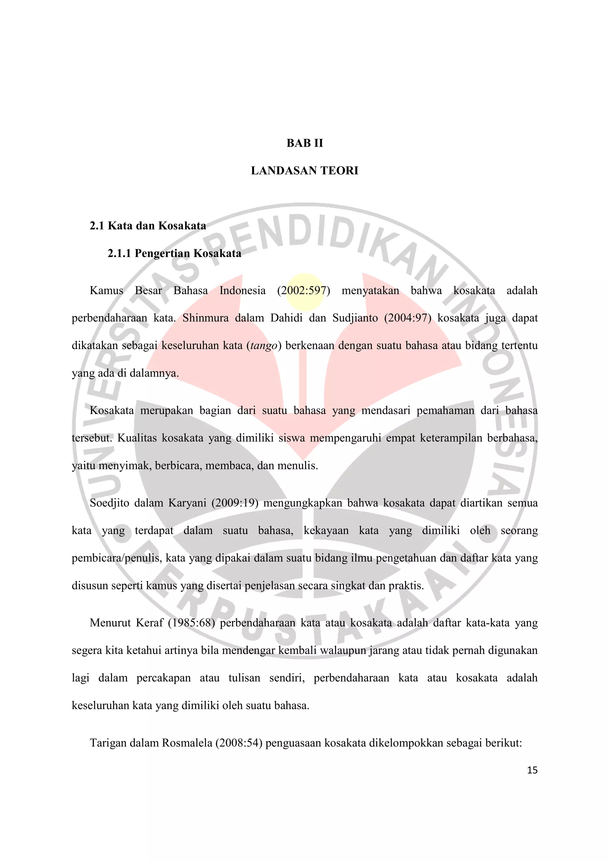 Dokumen tersebut membahas tentang pengertian kosakata, jenis-jenis kosakata dalam bahasa Jepang, dan penggolongan kelas kata dalam bahasa Jepang. Dibahas pula prinsip-prinsip dasar metode pengajaran, efektivitas metode pengajaran, dan pengertian serta kegunaan media pembelajaran.