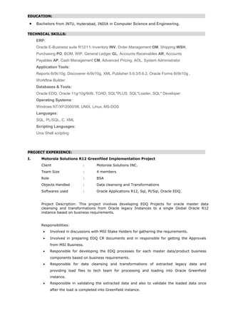 - He has expertise in implementing interfaces, conversions, reports, workflows, and other components between legacy systems and Oracle Applications.