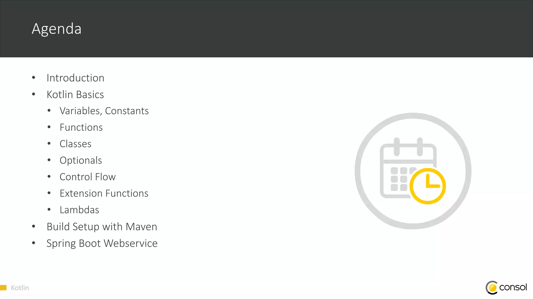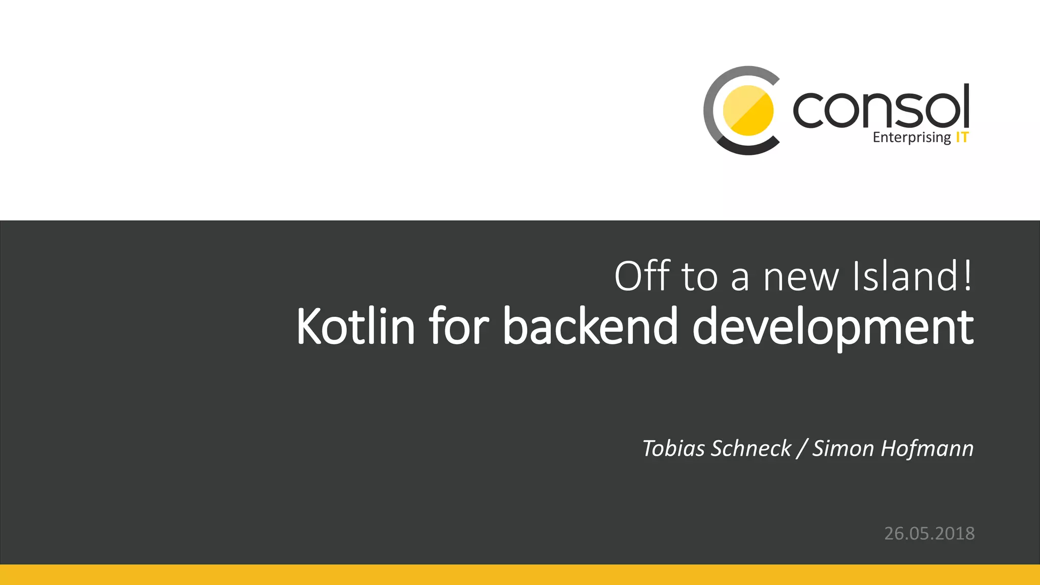 The document presents an introduction to Kotlin for backend development, covering its features and use cases, including variables, functions, classes, optionals, control flow, extension functions, and lambdas. It includes code examples and explains the setup of a Kotlin project using Maven and Spring Boot. Additionally, there are links to GitHub resources for practical coding exercises and further exploration of Kotlin basics.