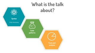 The document discusses Kotlin programming language features, including class syntax, constructors, properties, and lambda functions, complemented by code examples. It emphasizes the differences between Kotlin and Java, particularly in getters/setters and extension functions. Various programming patterns, like using optional lambdas and handling cursors, are also covered, illustrating how to effectively utilize Kotlin's capabilities.