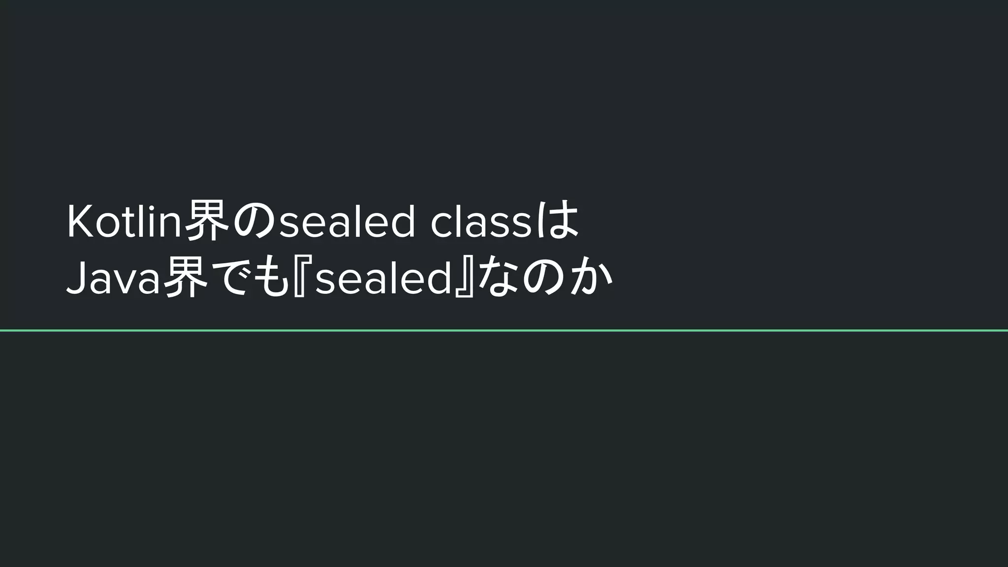 Kotlinで書かれたコードはJava界からどんな風に見えるのか ○ 完全に理解する必要はないがときどき思い出してあげると幸せになるかも ● sealed classはJavaから見ても『sealed』なのか?