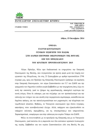 Κύριε Πρόεδρε, θέλω προ διαδικαστικά να ενημερώσω την Επιτροπή Οικονομικών της Βουλής, που συγκροτείται για πρώτη φορά μετά την έναρξη των εργασιών της Ολομέλειας, ότι στις 23 Σεπτεμβρίου με αριθμό πρωτοκόλλου 2798 έγγραφο μας, προς τον Πρόεδρο της Επιτροπής Οικονομικών ζητήσαμε για ακρόαση στην Επιτροπή Οικονομικών, τον κύριο Στασινόπουλο τον Γ.Γ του ΣΔΟΕ και την γραμματέα των δημοσίων εσόδων,κυρία Σαββαΐδου με την τεκμηρίωση όπως λέμε σε αυτή την επιστολή, γιατί το ζήτημα της φοροδιαφυγής, απασχολεί ευρύτερα την κοινή γνώμη.