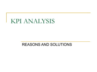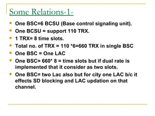 This document discusses key performance indicators (KPIs) for monitoring a GSM network and reasons for and solutions to common issues. It provides relationships between network elements, defines terms like SD blocking and dropping, TCH blocking and assignment, and TCH dropping. Causes of and fixes for these issues are outlined, such as adjusting parameters, adding TRXs, improving hardware, and tuning neighbors. Reports for analyzing each issue are also listed.