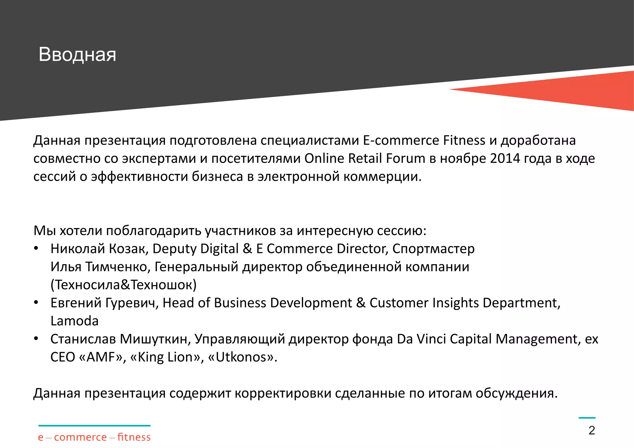 Презентация содержит ключевые показатели эффективности (KPI) для интернет-магазинов, разработанные с учетом мнений экспертов. Особое внимание уделяется систематическому наблюдению за показателями, что позволяет улучшать бизнес-результаты. Также представлены рекомендации и показатели, актуальные для электронной коммерции, включая показатели продаж и маркетинга.