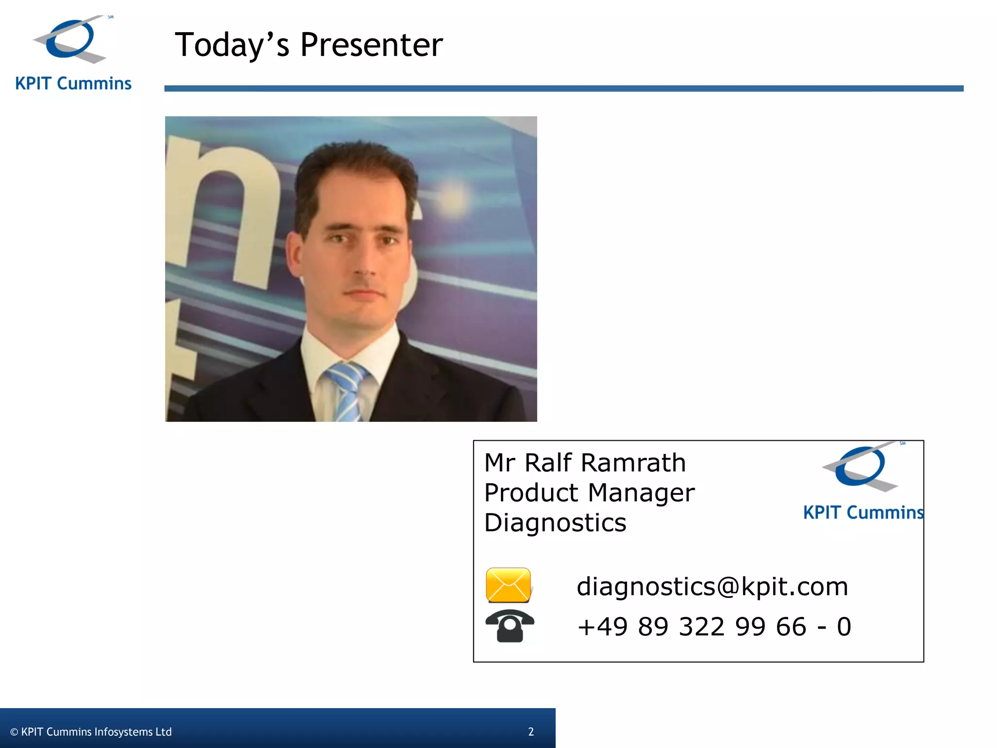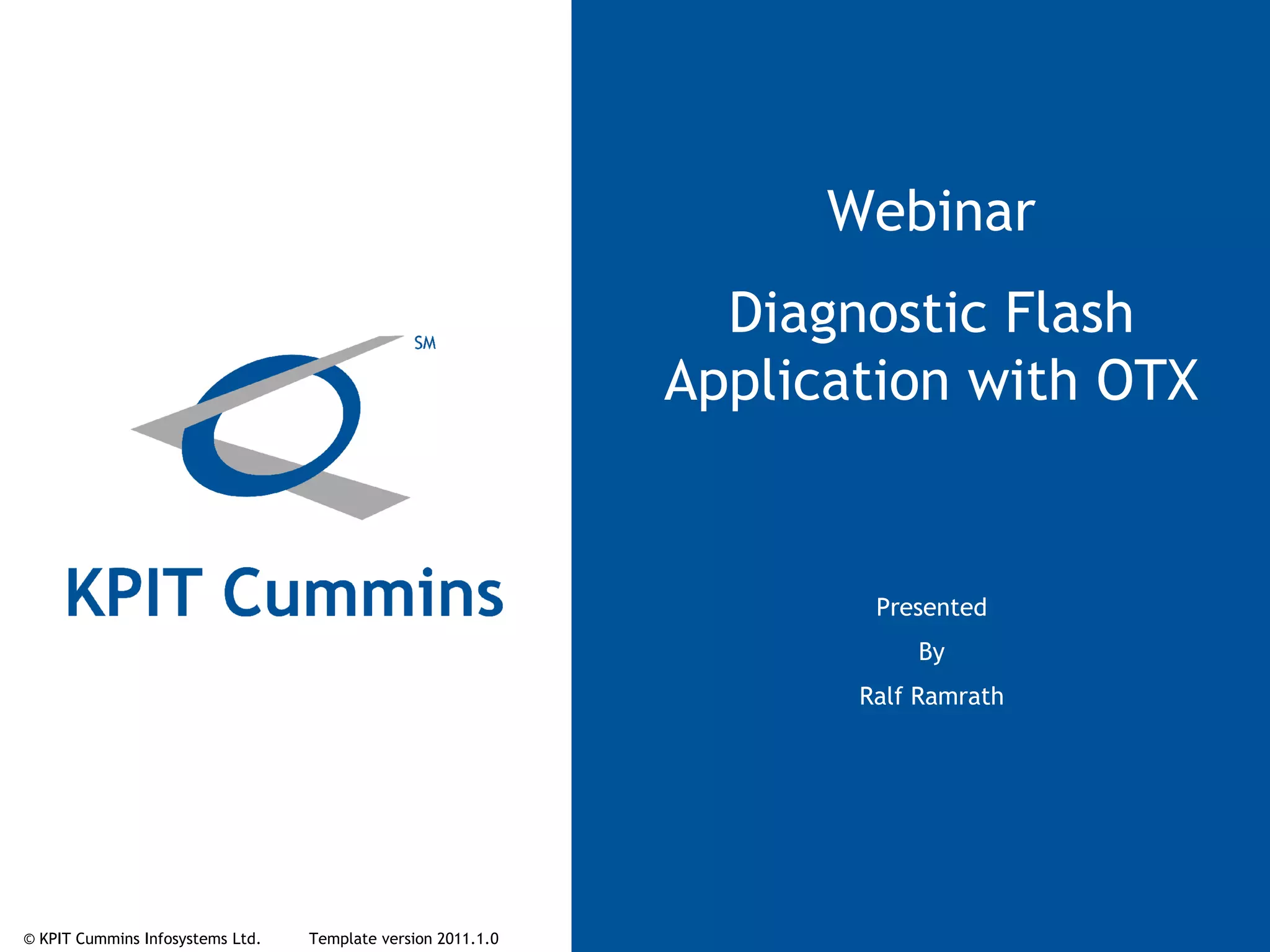 The document outlines a webinar on a diagnostic flash application introduced by KPIT Cummins Infosystems, highlighting the evolution and goals of diagnostic applications aimed at reducing dependency between tool vendors and users. It covers the architecture of the diagnostic toolchain, including various tools and protocols, as well as detailed steps on creating and deploying a flash application. Key topics include the organization of flash data, GUI design processes, and the handling of diagnostic commands.