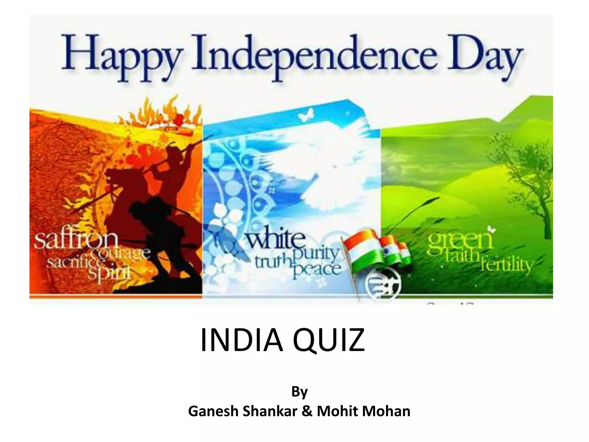 The document is a quiz that covers various topics related to Indian history, culture, and notable personalities. It includes questions about the establishment of institutions, contributions to independence, significant events, and cultural phenomena, fostering knowledge about India's heritage. Each question is paired with an answer providing insights into India's historical context and modern achievements.