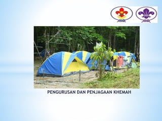 Dokumen ini membincangkan kemahiran perkhemahan dan penjagaan khemah, termasuk tip untuk menjaga keadaan khemah dan pelbagai gajet yang boleh dibuat untuk keselesaan semasa perkhemahan. Ia juga menggariskan amalan baik dalam membina gajet, termasuk penggunaan bahan semulajadi dan teknik ikatan yang betul. Aktiviti ini bertujuan untuk meningkatkan kebersihan, keselesaan, dan kemahiran berpengakap dalam kalangan peserta.