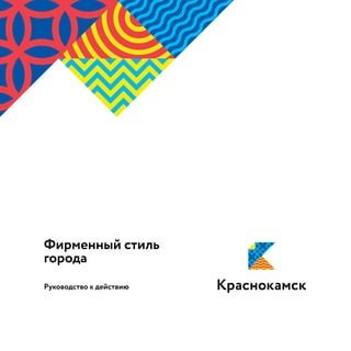 Документ представляет собой руководство по фирменному стилю для города, содержащий рекомендации по использованию логотипов, цветов, шрифтов и паттернов. Он включает правила оформления коммуникаций, примеры деловых документов и запрещенные способы использования элементов бренда. Основное внимание уделяется визуальной идентичности и необходимым стандартам для единого стиля представления информации.