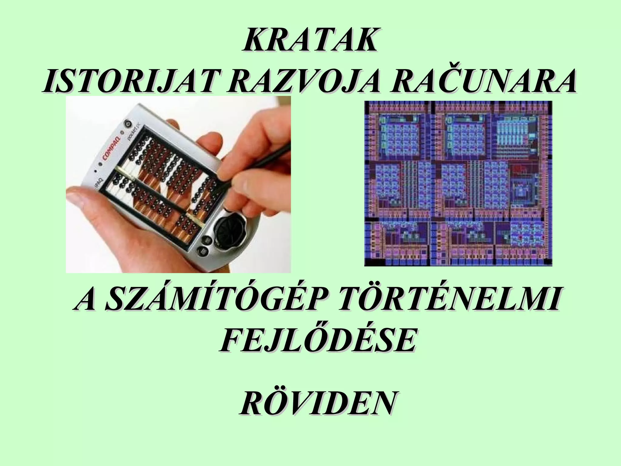 A SZÁMÍTÓGÉP TÖRTÉNELMIFEJLŐDÉSEA SZÁMÍTÓGÉP TÖRTÉNELMI FEJLŐDÉSE