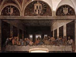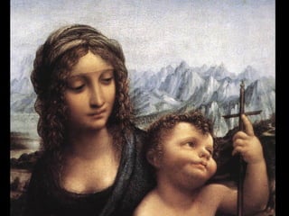 This document provides information on numerous artworks by Leonardo da Vinci from the 15th and early 16th centuries. It includes paintings such as the Annunciation, Madonna of the Carnation, Portrait of Ginevra de' Benci, Virgin of the Rocks, Mona Lisa, and The Last Supper. It also lists many drawings and studies by da Vinci, including anatomical studies, designs for architecture and sculptures, studies of heads and hands, and Vitruvian Man. The artworks span da Vinci's career and showcase his mastery of painting, drawing, and anatomical investigation.