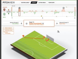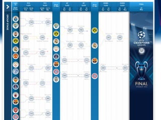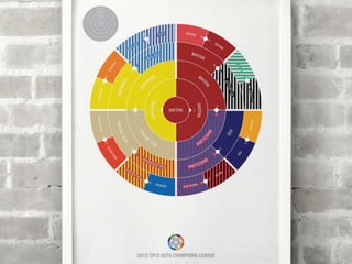 This document proposes a narrative display to summarize sports tournaments using a tree layout to show tournament structure, small multiples to detail individual matches, and tweets to capture fan reactions, using data from the 2012-2013 UEFA Champions League as an example. The display would be hosted at uclfinal.twitter.com and divided into three main sections for tournament overview, match details, and fans' reactions.