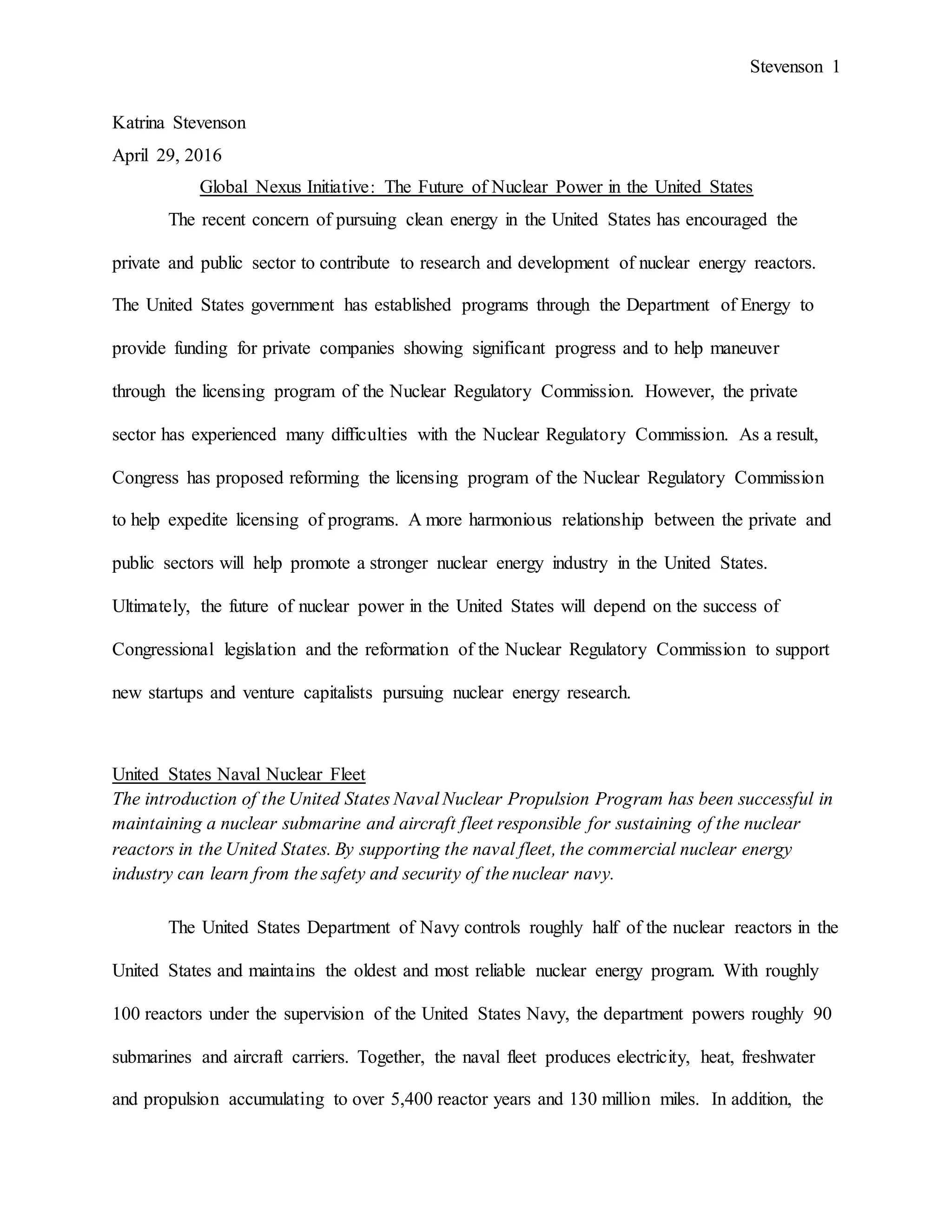 1) The US government has established programs through the Department of Energy to provide funding for private nuclear companies and help with licensing through the Nuclear Regulatory Commission. However, private companies have faced difficulties with the NRC.