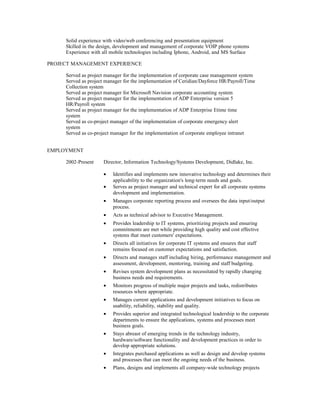 This document is a resume for Kathryn I. Tetreault, an experienced IT Director with over 20 years of experience leading the implementation of corporate systems and managing IT departments. She has extensive experience in areas such as system development, computer support, database design, networking, and project management. She holds several IT certifications and degrees focused on information technology and project management. The resume provides details on her technical skills, work history managing IT for nonprofit organizations, and accomplishments implementing various software systems and technologies.