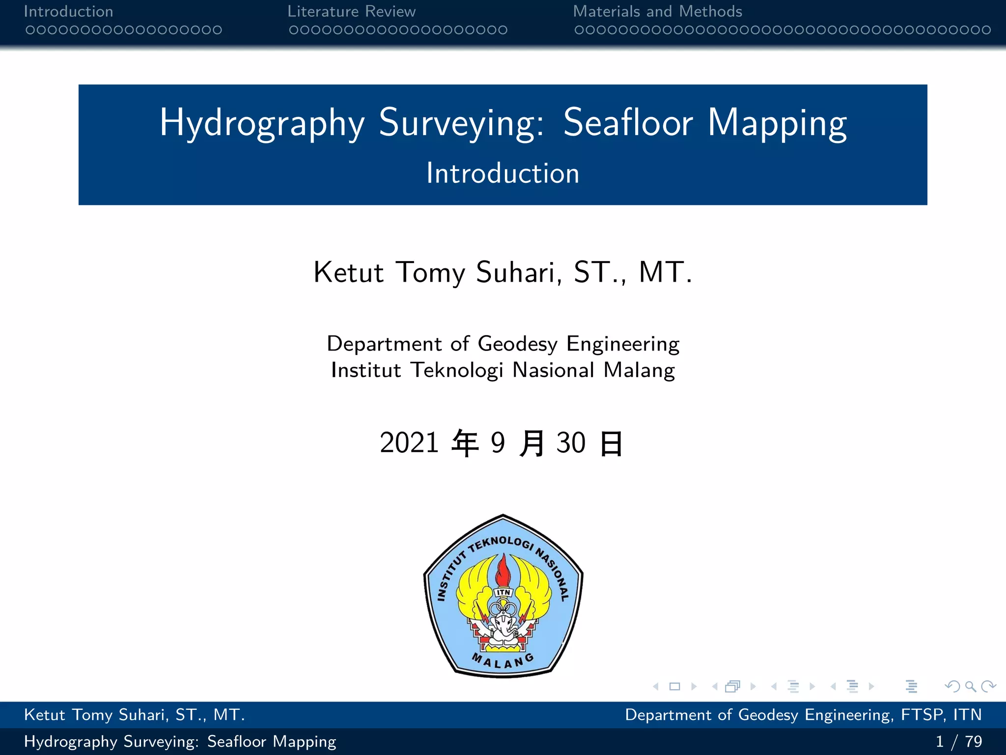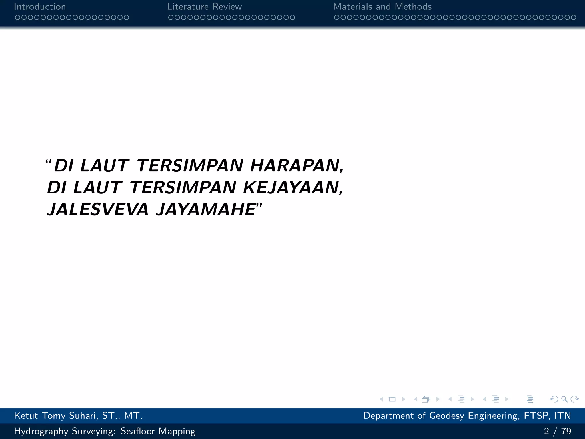 This document provides an introduction to hydrography surveying and seafloor mapping. It defines hydrography as dealing with measuring and describing physical features of bodies of water like oceans, seas, lakes and rivers for purposes like navigation safety. The key components of hydrographic surveys are positioning, depth measurement, feature identification and seafloor characterization to produce nautical charts. Hydrography utilizes various sciences including physical oceanography, acoustics, marine geology and cartography. Accurate hydrographic data and charts provide important benefits such as navigation safety, national security and enabling maritime commerce.