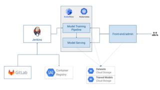 Kubeflow is an open-source project that makes deploying machine learning workflows on Kubernetes simple and scalable. It provides components for machine learning tasks like notebooks, model training, serving, and pipelines. Kubeflow started as a Google side project but is now used by many companies like Spotify, Cisco, and Itaú for machine learning operations. It allows running workflows defined in notebooks or pipelines as Kubernetes jobs and serves models for production.