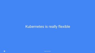 The document outlines Kubernetes best practices on the Google Cloud Platform, emphasizing container management, efficiency, and security. Key recommendations include using small base images, non-root users, one process per container, and proper labeling for deployments. It also advocates the use of Helm charts, service meshes, and the importance of health checks, among other strategies for effective Kubernetes usage.