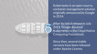 This document provides steps to deploy a WordPress application with a MySQL database on Kubernetes. It demonstrates creating secrets for database credentials, persistent volumes for database storage, services for external access, and deploying the WordPress and MySQL containers. Various Kubernetes objects like deployments, services, secrets and persistent volumes are defined in YAML files and applied to set up the WordPress application on Kubernetes.