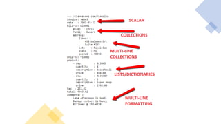 • YAML uses key value pairs for storing data