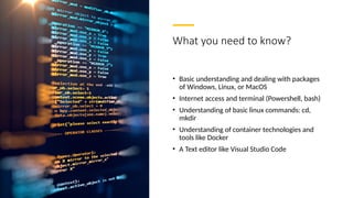 • Understanding of container technologies and
