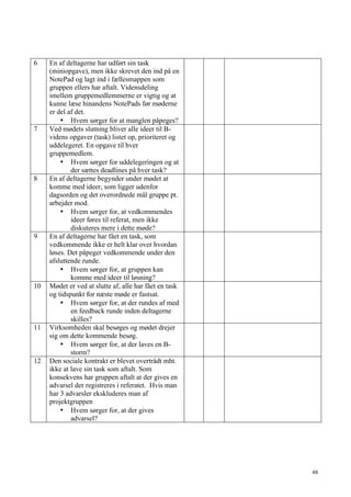 Social kontrakt Et dokument som beskriver de samarbejdsaftaler, der er indgået i et team. Man kan