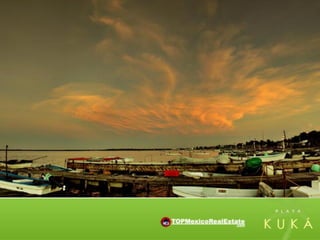 Playa Kuka offers beachfront lots for sale within the protected Ría Lagartos Biosphere Reserve in Yucatan, Mexico. The lots have over 100 meters of beachfront and cover over 10 acres, and purchasing clients can contract with the developers to build an eco-friendly home designed for the local environment and climate. The brochure provides details on lot sizes and features, home construction services, and the natural attractions and activities available in the surrounding fishing village of Rio Lagartos.