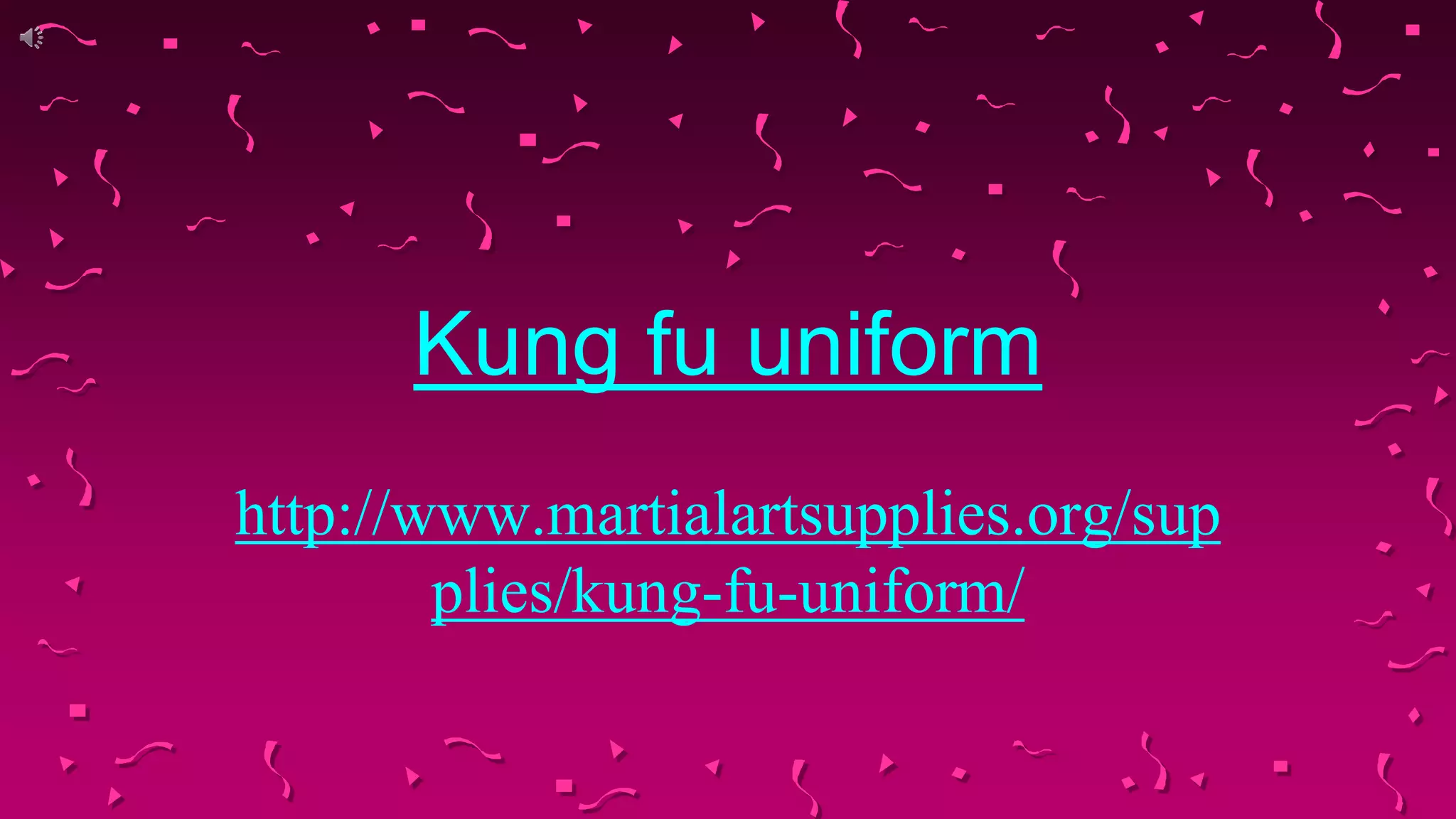 This document summarizes the key components of a standard kung fu uniform including trousers with an elastic waist and drawstring, which have elastic at the ankles. It also includes options to complete the uniform such as a silk sash and kung-fu shoes. Additional accessories like metal bands are suggested to help build strength for traditional training.
