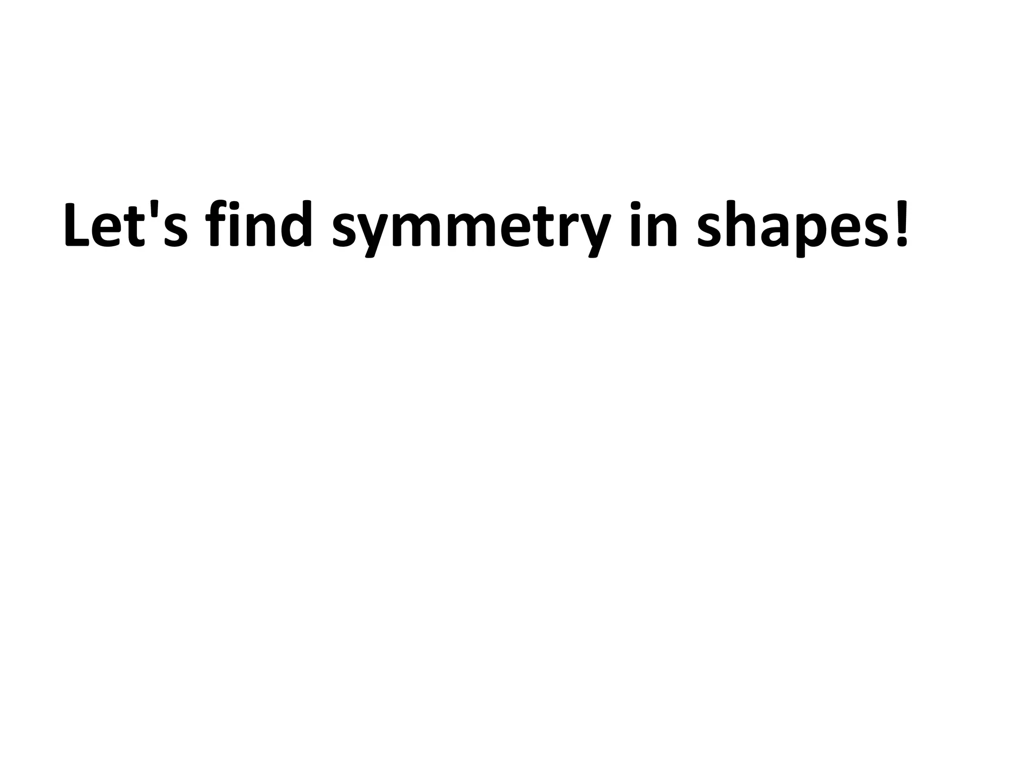 The document discusses identifying symmetric figures and lines of symmetry. It explains that a line of symmetry can be found by folding a shape so that the folded edges match perfectly. It provides examples of symmetric shapes and asks students to find lines of symmetry and complete symmetric figures. The goal is for students to practice identifying symmetry in different shapes.
