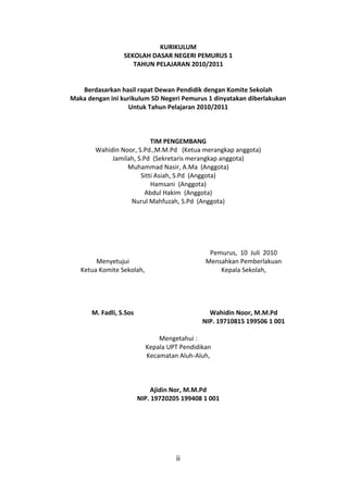 Kurikulum SDN Pemurus 1 Tahun Pelajaran 2010/2011 dirangkum dalam 3 kalimat berikut: