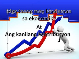 Ang dokumento ay tungkol sa iba't ibang mahahalagang ekonomista sa Pilipinas, kasama na sina Jose Encarnacion Jr., Benjamin Diokno, Mar Roxas, Maria Gloria Macapagal Arroyo, at mga banyagang ekonomista tulad nina Karl Marx, John Maynard Keynes, Thomas Malthus, Adam Smith, at Max Weber. Tinalakay ang kanilang mga kontribusyon sa larangan ng ekonomiya at ang kanilang mga pananaw sa mga suliranin ng ekonomiya, mga reporma, at ang pag-unlad ng mga patakaran. Ang mga ideya mula sa mga ekonomistang ito ay nagbigay-diin sa kahalagahan ng interbensyon ng pamahalaan, pagpapalago ng industriya, at pagpaplano ng pamilya sa pagtaas ng kalidad ng buhay ng mga tao.
