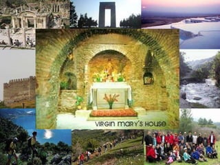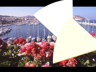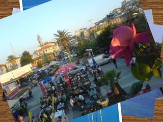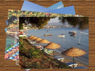 Документ описывает туристические возможности в Кушадасы, Турция, включая информацию о визах, достопримечательностях, ночных клубах и водных видах спорта. Упоминаются исторические места, такие как Эфес и дом Девы Марии, а также различные мероприятия и развлечения. Предложены альтернативные города для посещения, такие как Стамбул и Анталия.
