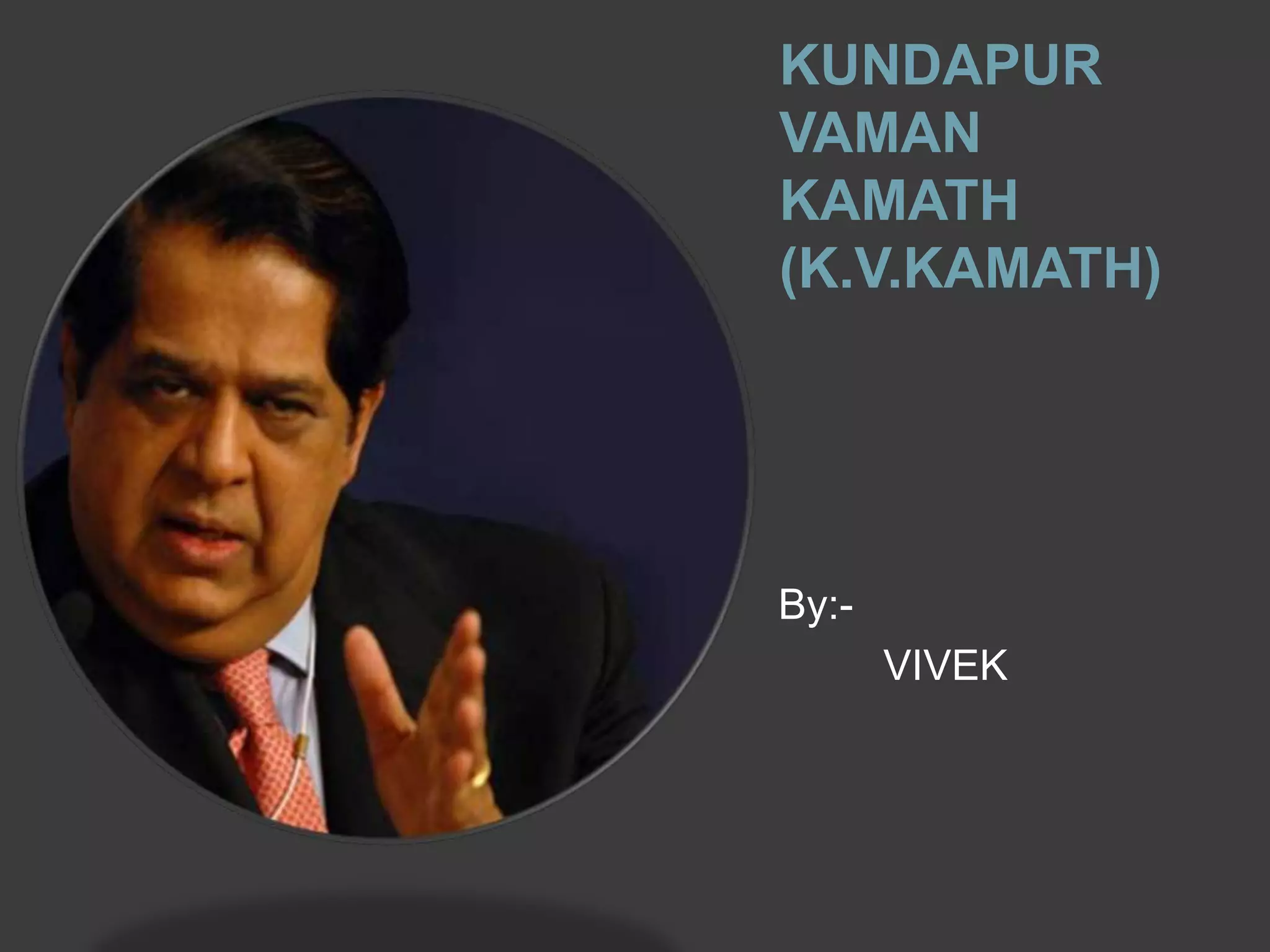 Kundapur Vaman Kamath (K.V. Kamath) is an Indian banker who served as the Chairman of ICICI Bank. He had a long career in banking and financial services, working for ICICI for over 20 years in various leadership roles. In 2011, he was appointed as the non-executive Chairman of Infosys, a major Indian IT company. Kamath has received several prestigious awards and honors for his contributions and leadership in the banking and financial sectors.