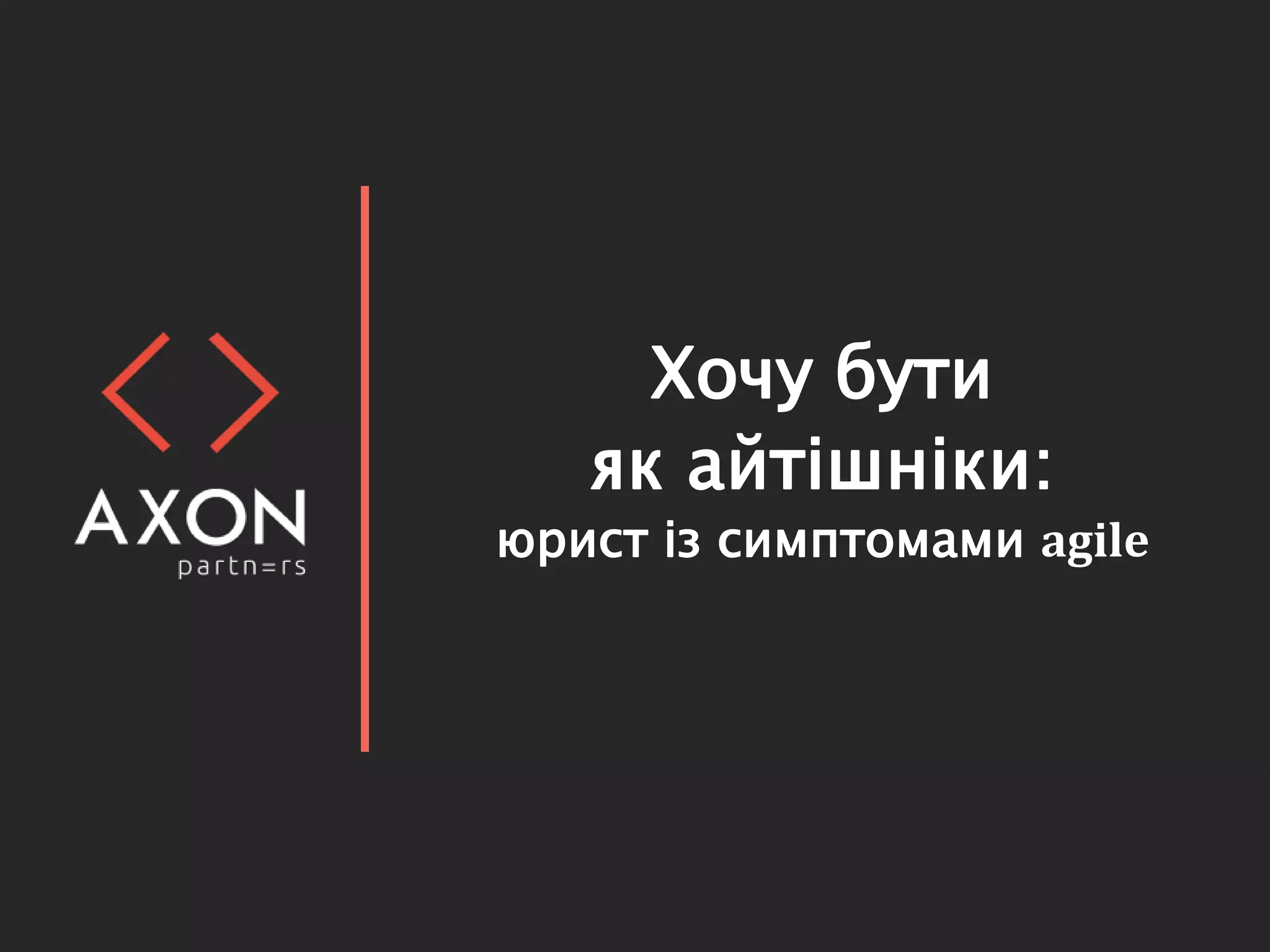 Kyiv Project Management Day 2016 Богдан Дучак: Хочу бути як айтішніки: юрист із симптомами agile Сайт конференції: http://pmday.org/ Спільнота в мережі Linkedin: http://bit.ly/PMDayLin Спільнота в мережі facebook: http://bit.ly/PMDayKyivFB Twitter конференції: https://twitter.com/LvivPMDay
