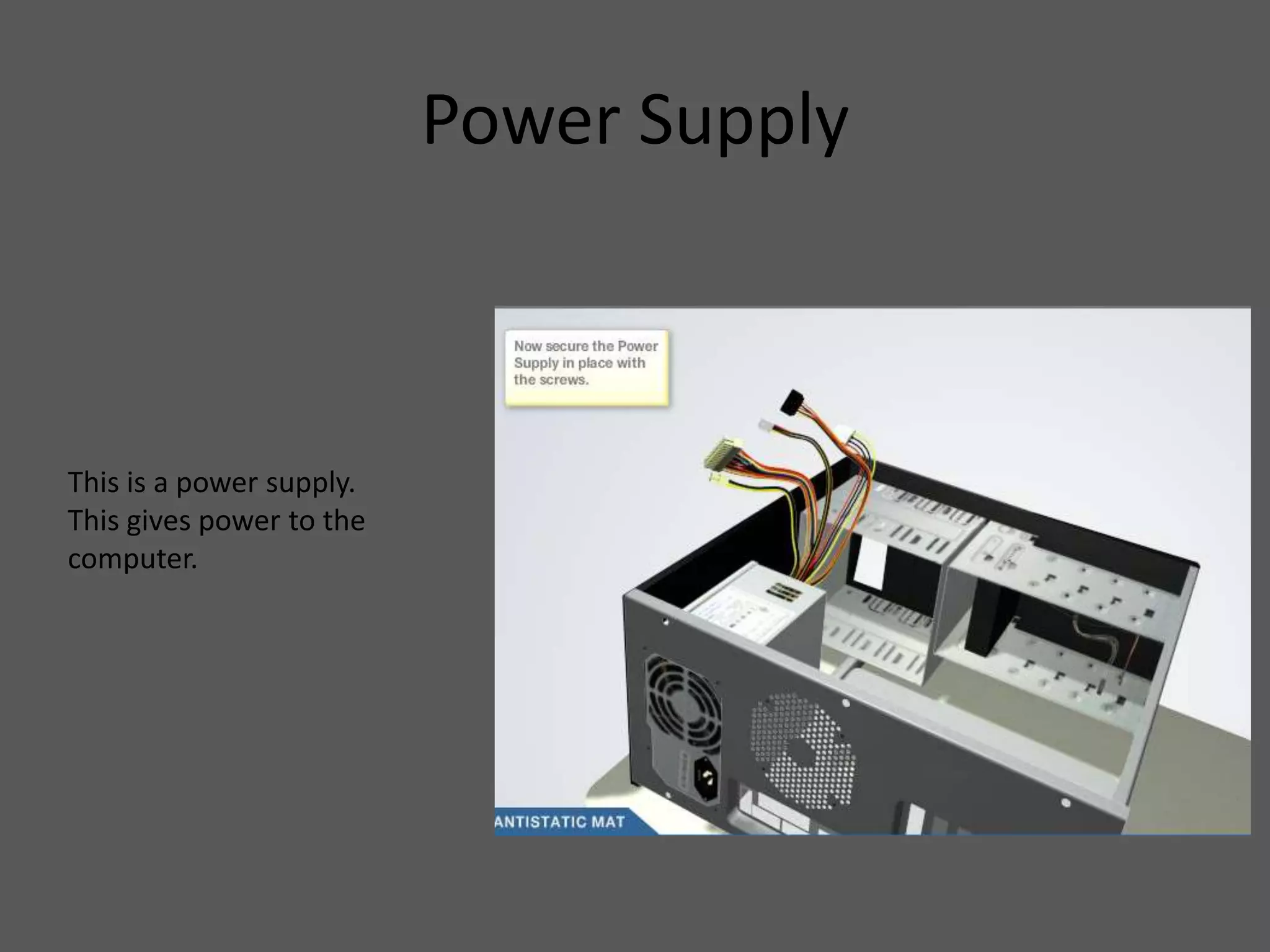 This document describes and identifies the key components that make up a computer system. It includes the power supply, motherboard, CPU, RAM, fan, network interface card, video adapter, hard disk drive, optical drive, floppy drive, various cables, case panels, monitor, keyboard, mouse, USB ports, Ethernet port, wireless antenna, and power cord. The components work together to power the system and allow processing, data storage, and input/output functionality.