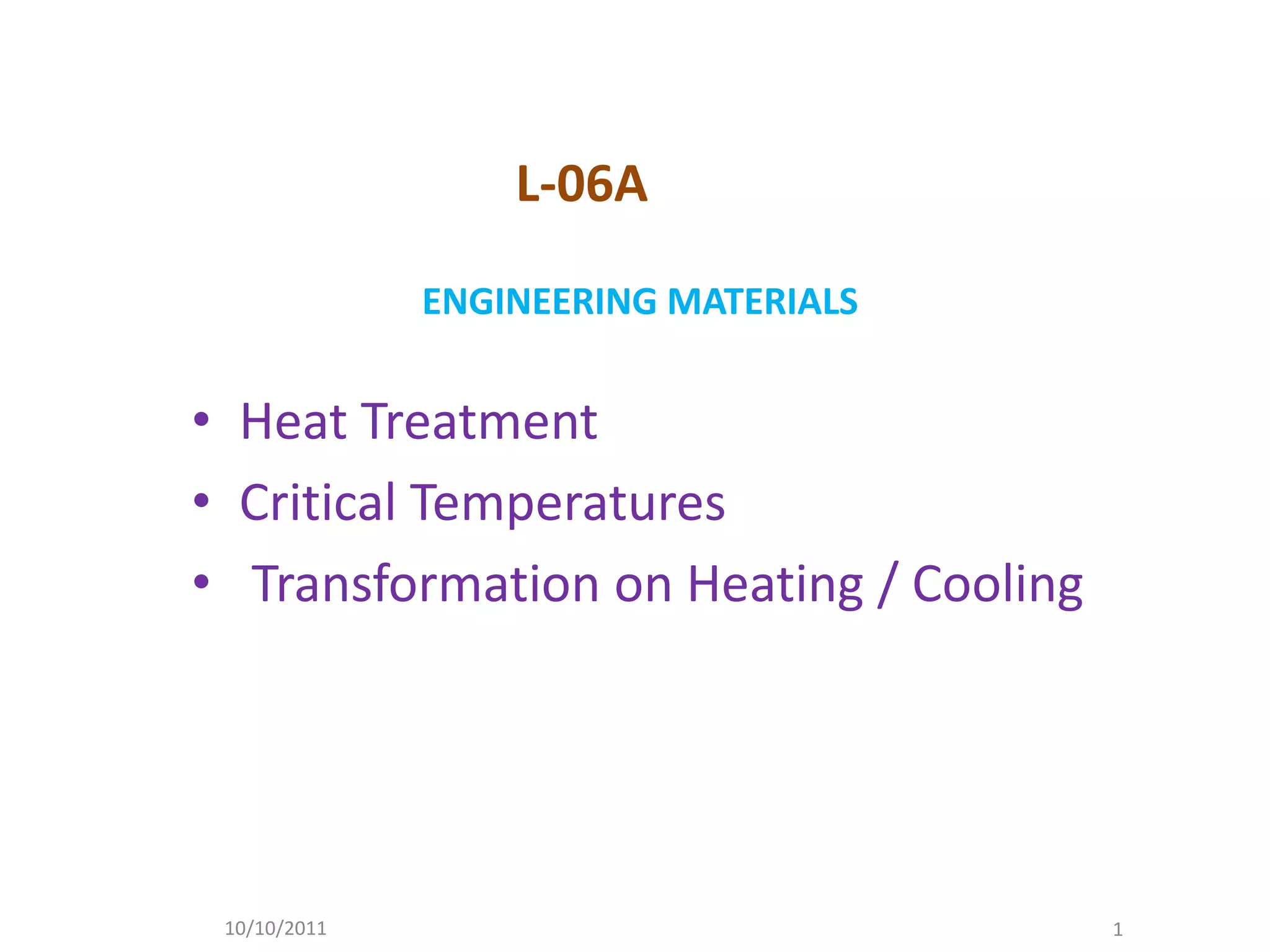 The document discusses heat treatment processes for engineering materials. It describes how heating and cooling can be used to alter the structure and properties of materials, primarily metals. Key points include: