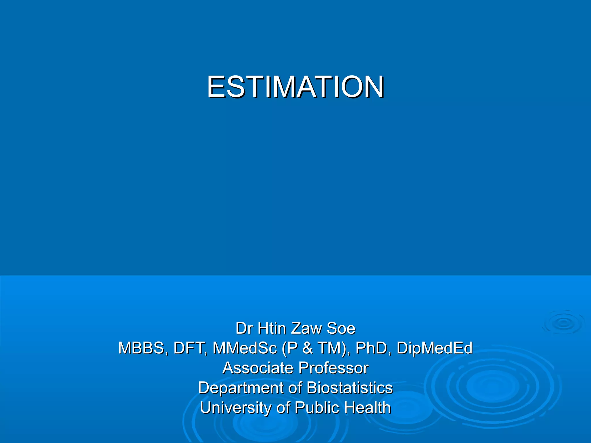 - Estimation involves using a statistic like the sample mean or proportion to estimate an unknown population parameter. Point estimates are single values while interval estimates specify a range of values with a given confidence level.