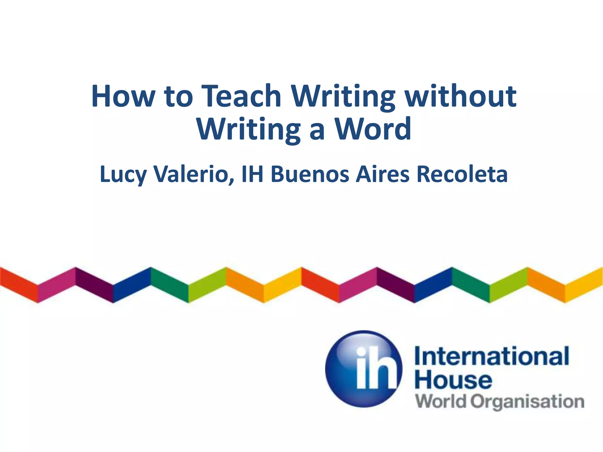 This document outlines a process-based approach to teaching writing without requiring students to write full paragraphs or compositions. It involves activating students' prior knowledge through discussion, having them analyze model letters, and practicing the structure and appropriate language. Students brainstorm ideas, evaluate language, and organize their thoughts. They then work with partners to provide feedback and refine their ideas before producing a final draft. The goal is to engage students in higher-order thinking about writing before having them produce full compositions.