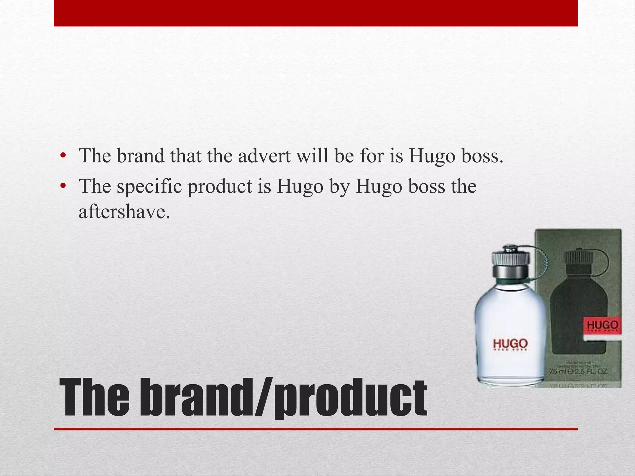 The document provides background information on Hugo Boss as a brand and company. It discusses the history of Hugo Boss starting in 1924 and highlights key moments such as introducing their first men's suit in 1950. The document also examines Hugo Boss' brand, product, and advertising history over the years. This includes an analysis of a typical Hugo Boss advertisement and the codes and conventions it uses. Market research on Hugo Boss' products, competitors, and the effectiveness of previous advertising is also presented.