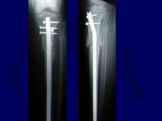 2) Intramedullary nailing is now the preferred surgical treatment, as studies have shown it results in higher union rates and fewer complications compared to other options. However, anterior knee pain remains a common complication after nailing.