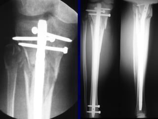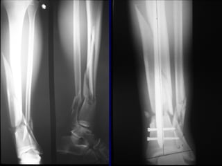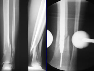 1) Closed tibial shaft fractures are a common injury, with over 492,000 occurring per year in the US. They can be treated nonoperatively with casting or surgically with intramedullary nailing, plating, or external fixation.