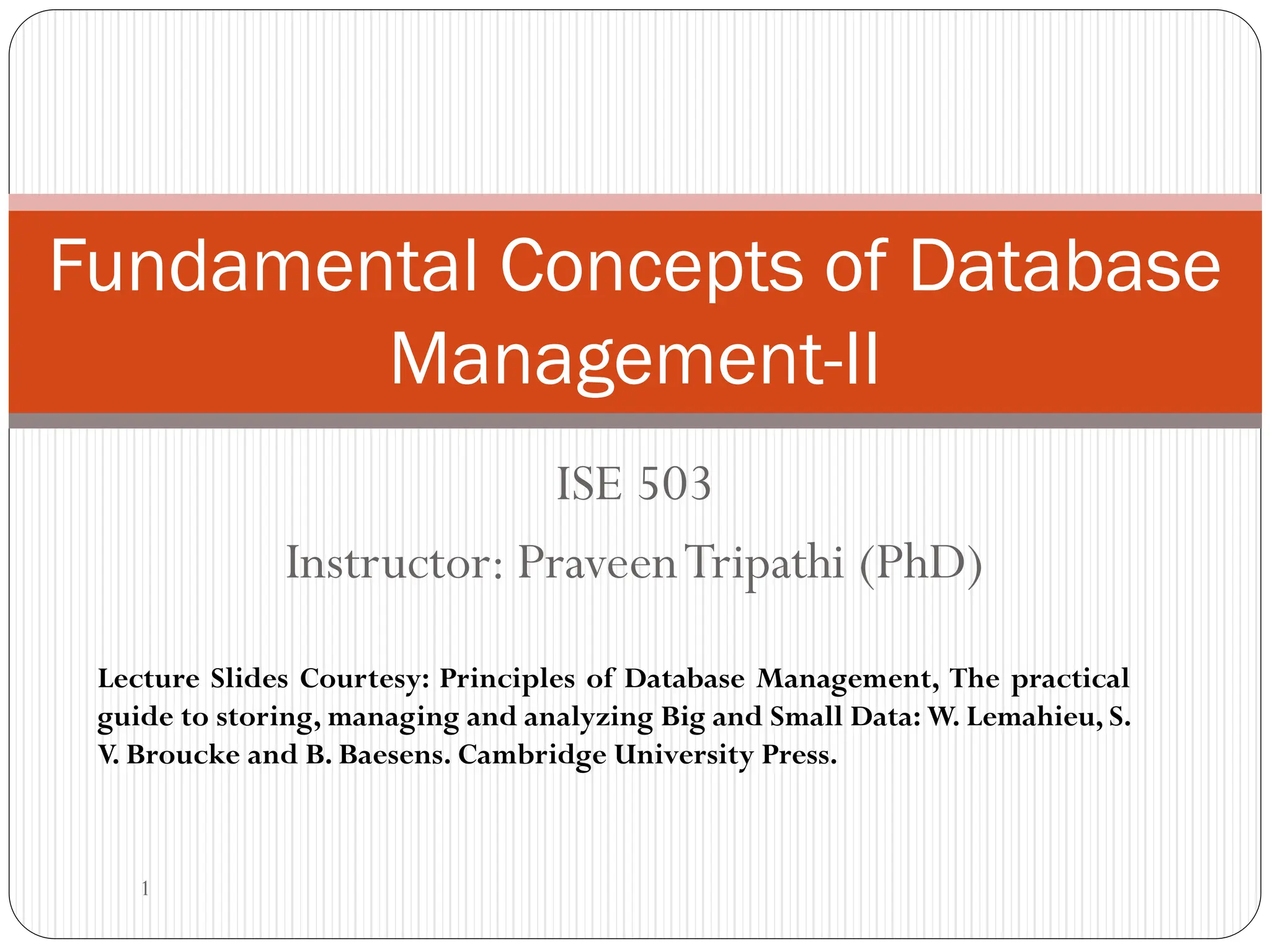 This document outlines fundamental concepts of database management, covering definitions of databases and database management systems (DBMS), roles of database users, and database languages such as DDL and DML. It discusses the advantages of database systems including data independence, concurrency control, and backup facilities, while also addressing the management of different types of data and the importance of integrity rules and data security. Additionally, it highlights performance utilities and the role of DBMS in improving key performance indicators.